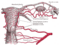 Arteri saluran reproduksi wanita: arteri uterina, arteri ovarika dan arteri-arteri vaginalis. (Arteri uterina diberi label di tengah.) | |
