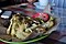 Rendang daging sapi yang tengah dihidangkan dengan ketupat | |